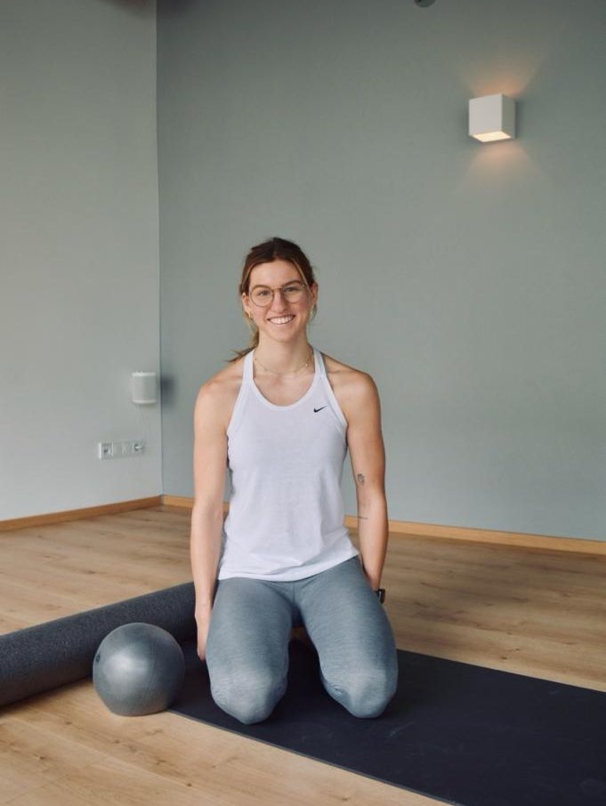Hannah bietet „Postnatales Pilates – sanft zurück zu deiner Kraft" an, einen Kurs der Frauen nach der Geburt begleitet.
